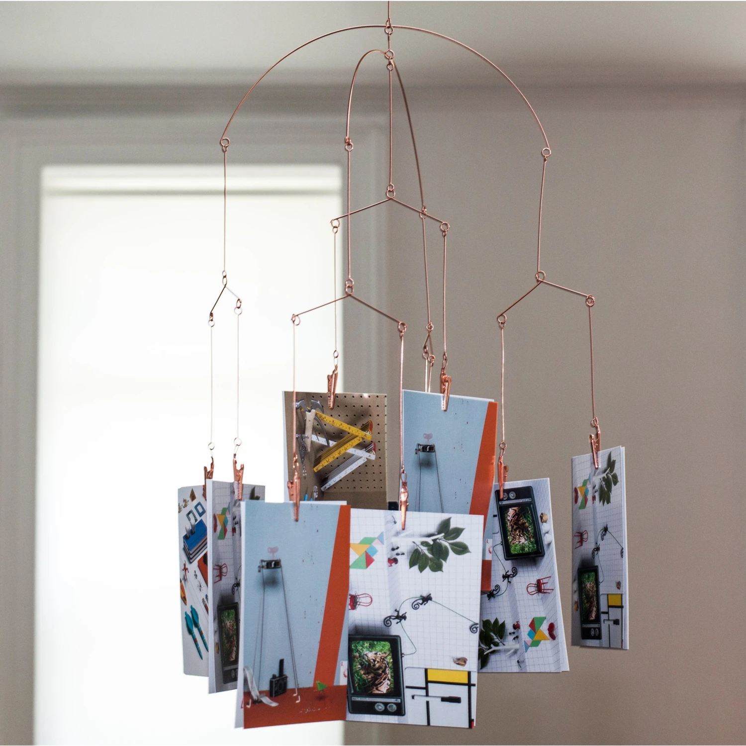 Bring the art gallery into your home or office with our mobile photo clip. Elegantly designed in copper, your pictures will never look better. You no longer have to choose which photos to put out because there’s not enough shelf space. Put them all out in an artistic way.