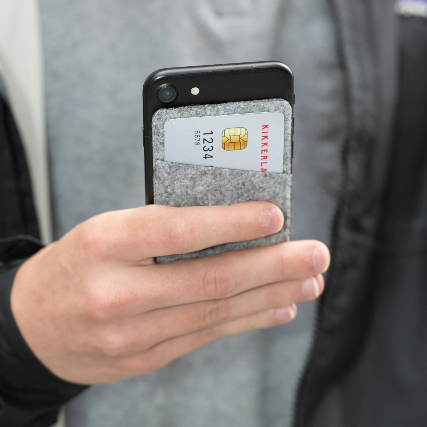 Your essential “to-go” wallet that attaches to any phone or tablet. This universal phone pocket holds up to 3 cards. Stylish felt finish, easy removable non-residue 3M adhesive.