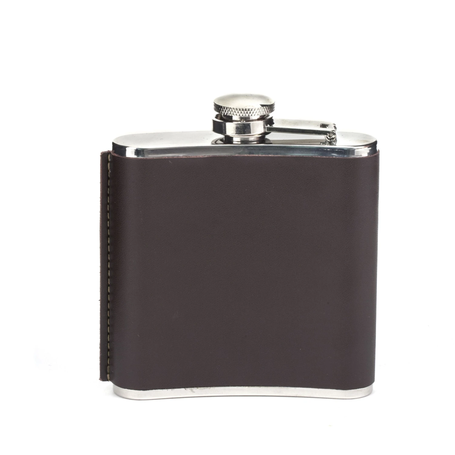 - 18/8 stainless steel hip flask with genuine leather sleeve
